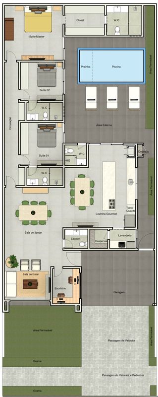 Inclui banheiros, lavabos, suítes e demi-suítes